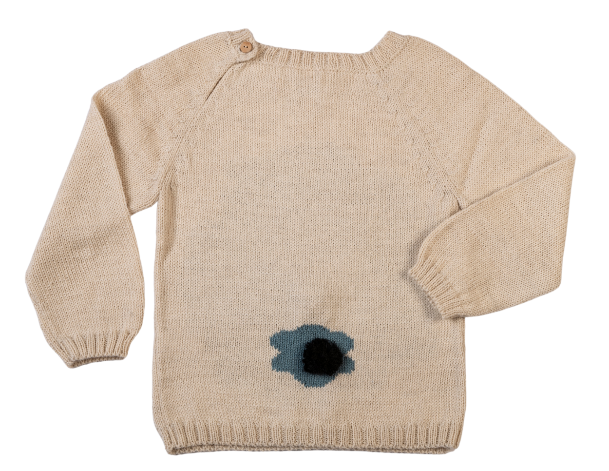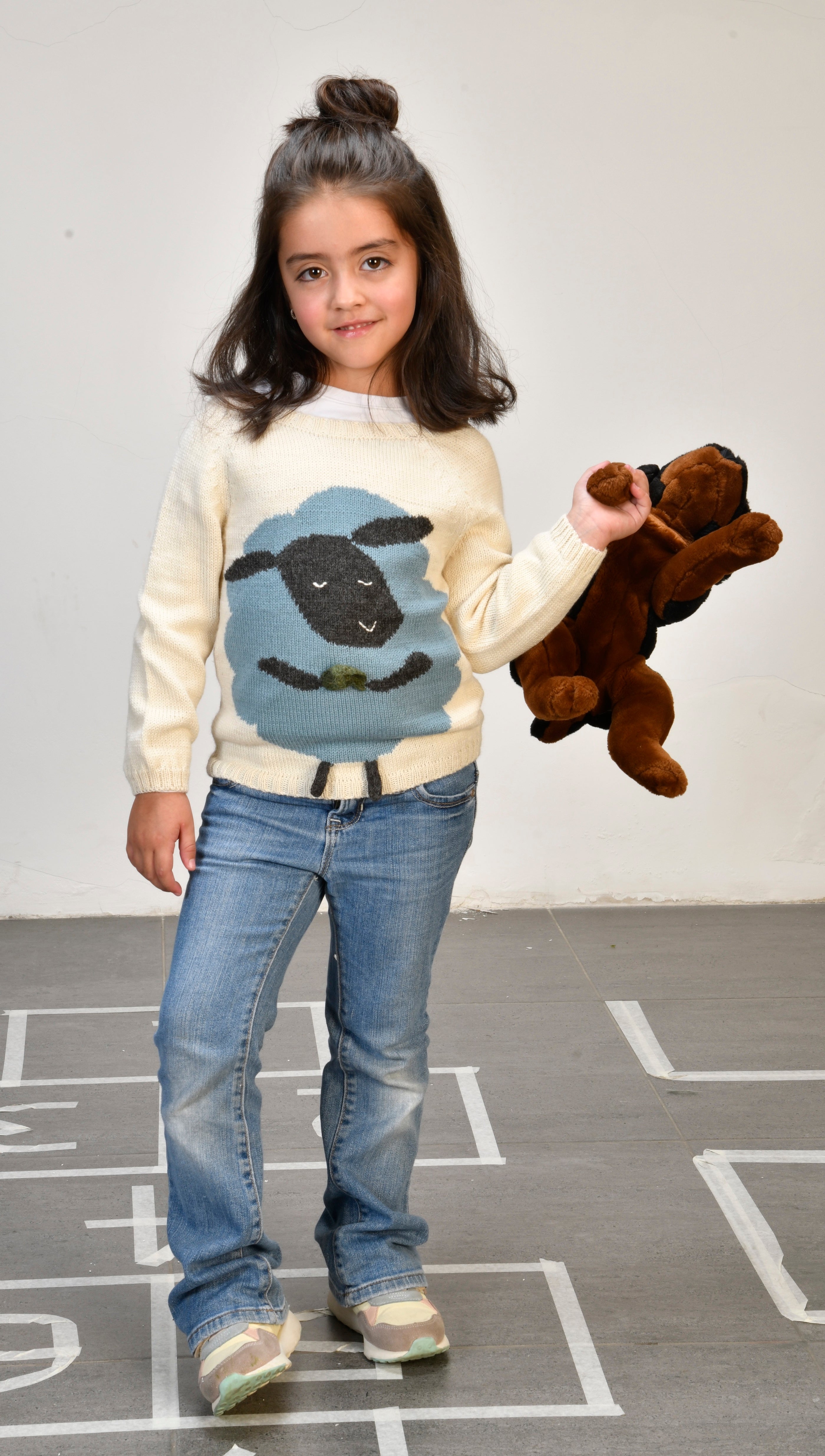 Each sweater features adorable little lamb designs on the front and back — inspired by the playful lambs that roam the Bolivian highlands. With tiny tails and gentle details, these designs capture the innocence and joy of childhood while bringing a touch of nature’s charm to every outfit.